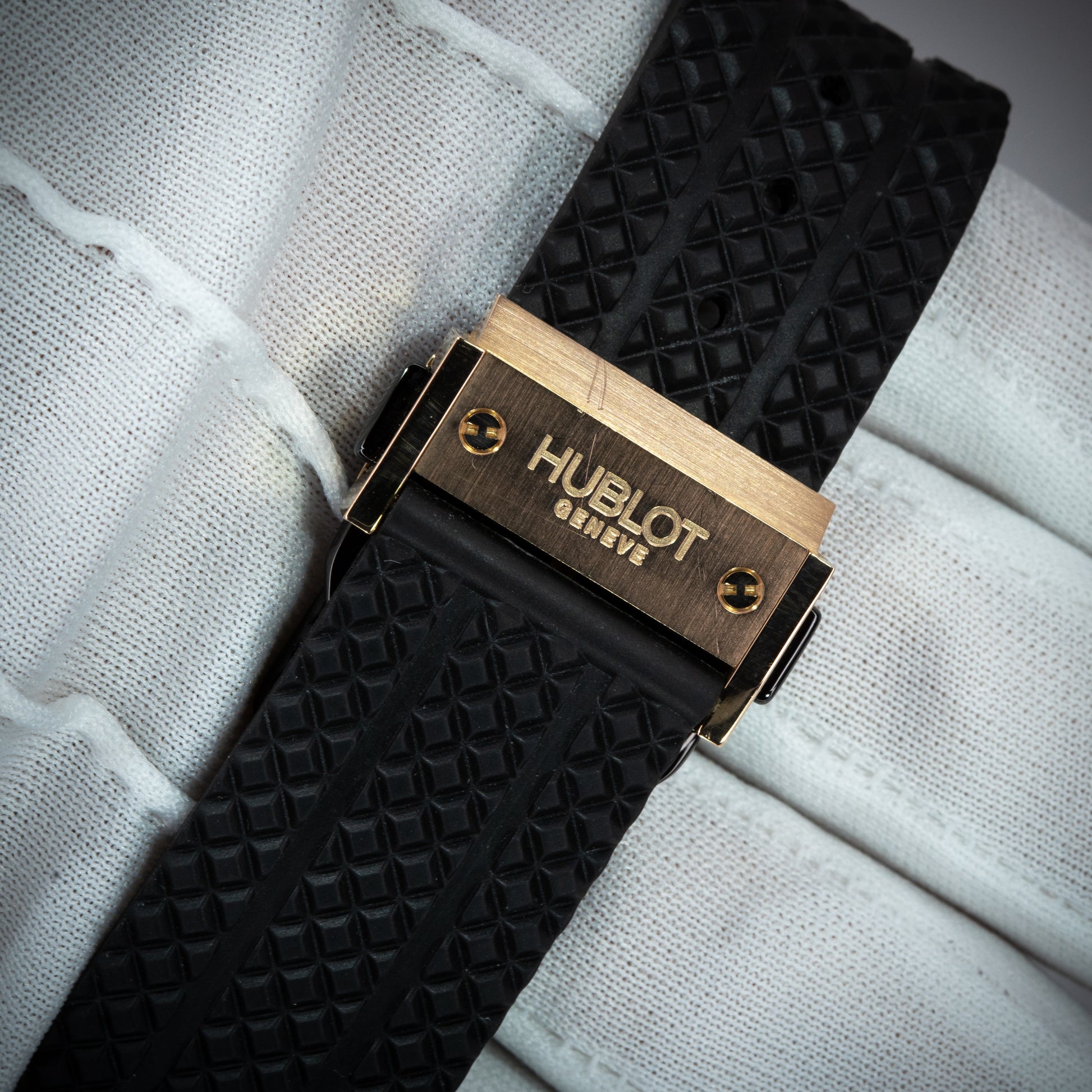 Strap: Great — OEM black Hublot natural rubber strap with deployant buckle, minimal signs of careful wear (see photos)