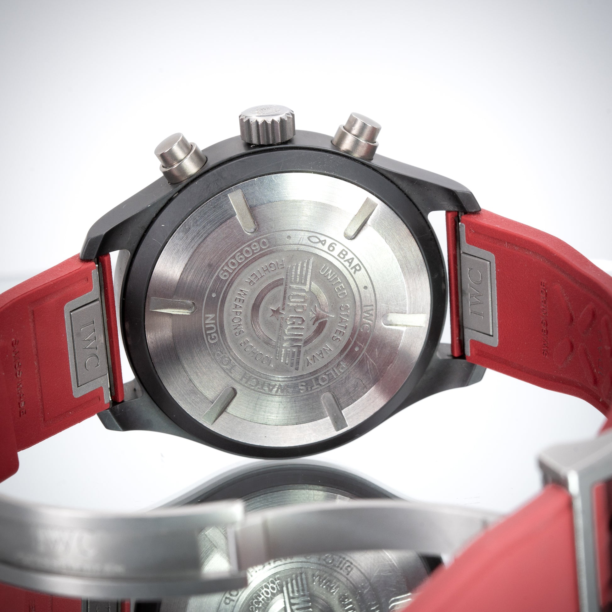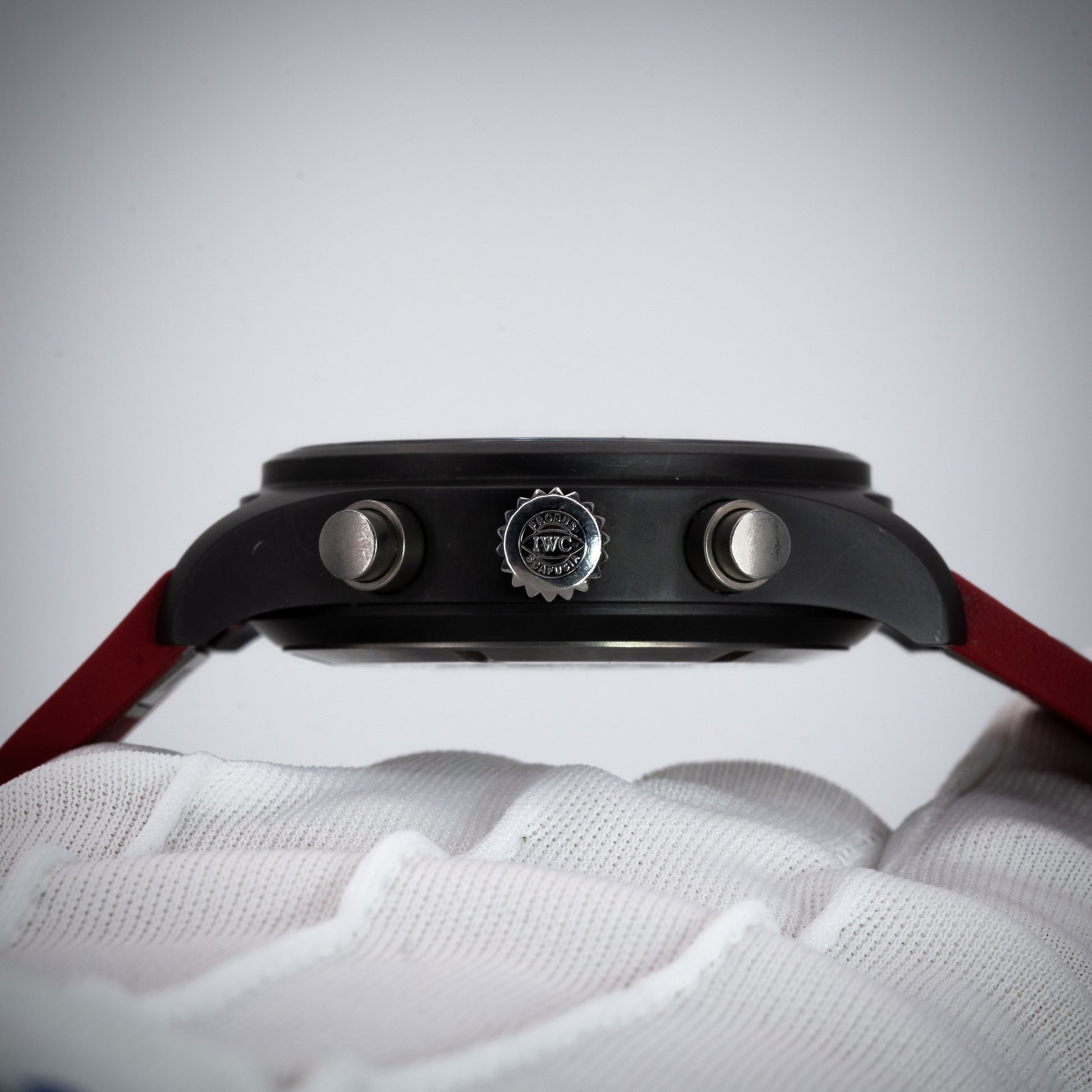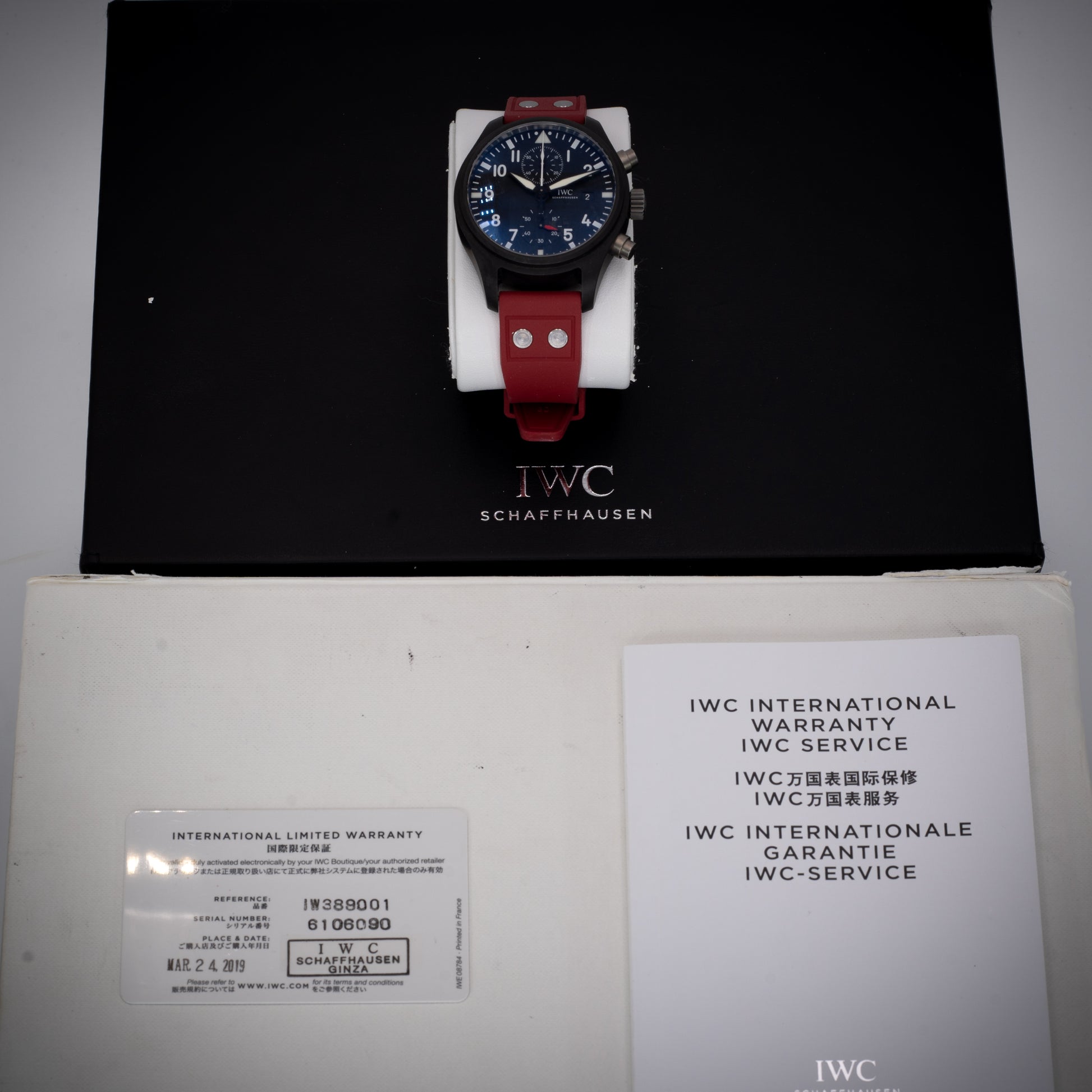 IWC Pilot’s Watch Chronograph Top Gun IW389001 Ceramic Black 44.5 mm Full Set on OEM Red Rubber Strap